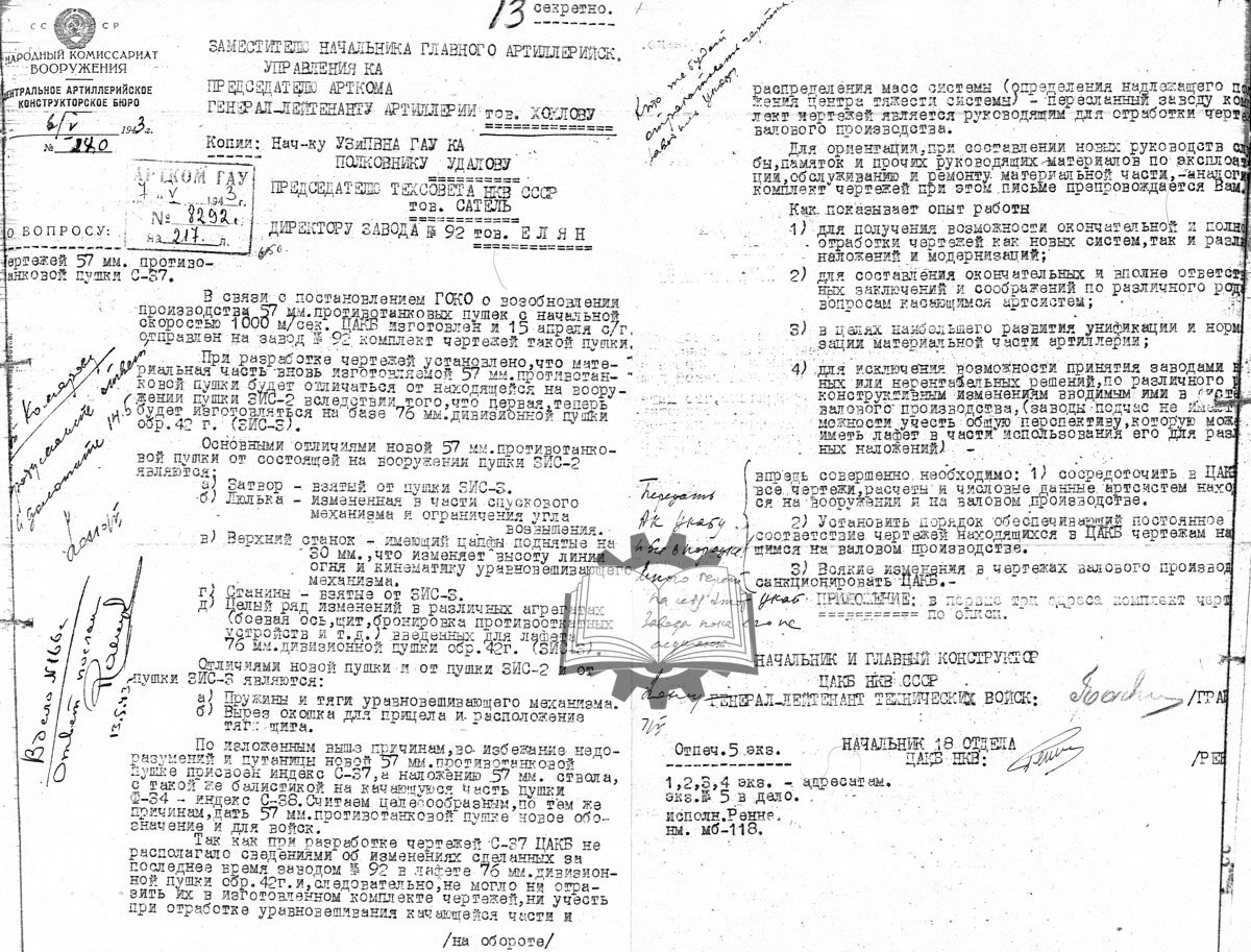История появления и запуска в крупную серию 57-мм противотанковой пушки ЗИС-2 обр.1943 года