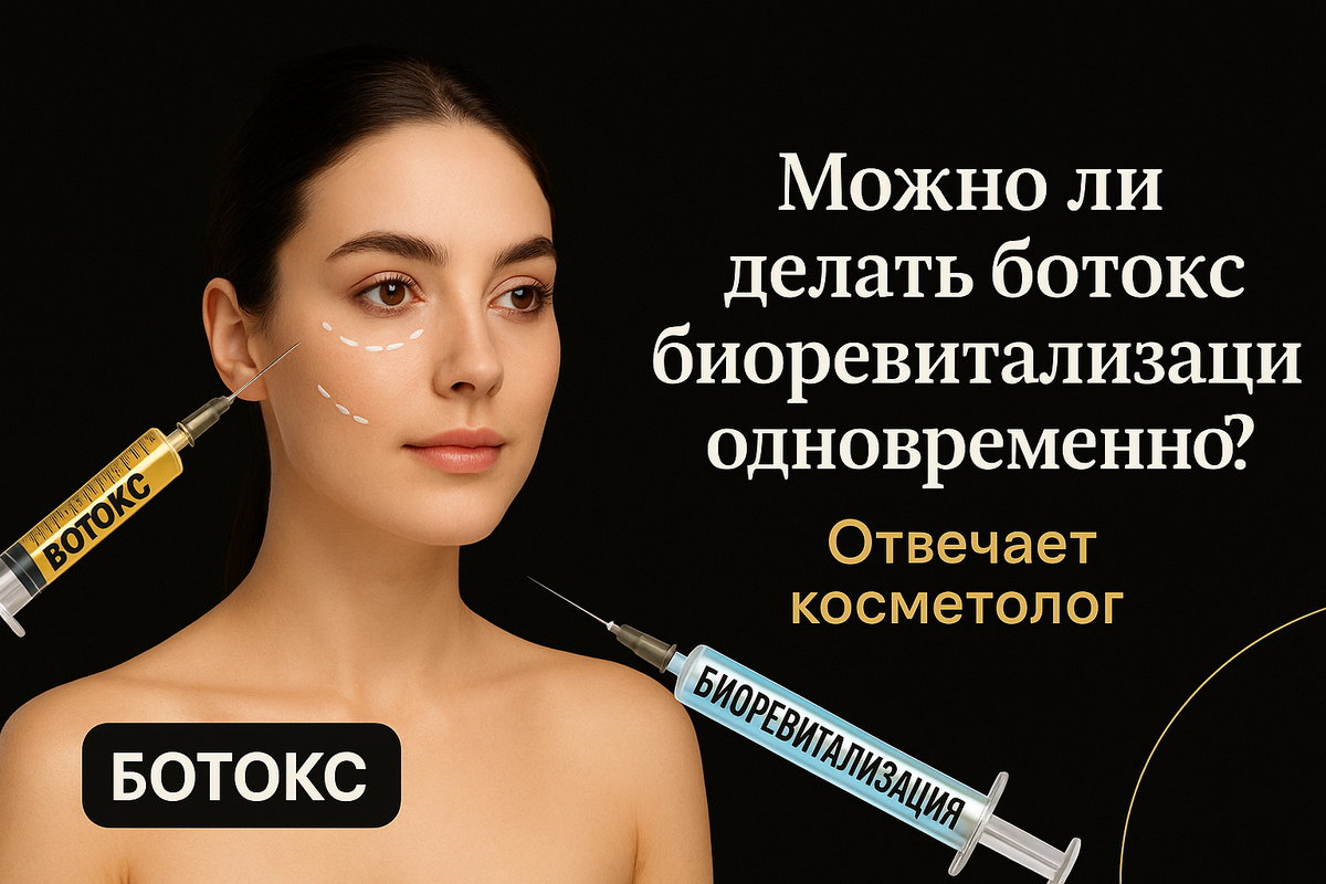 — У вас плотный график, маленький ребёнок и нет возможности часто приезжать В этих случаях можно объединить ботокс и биоревитализацию в одну процедуру — всё будет в порядке. Хотя сочетание допустимо, я чаще советую делать поэтапно: сначала ботокс, а через 5–7 дней — биоревитализацию. Объясню почему. Когда две процедуры делаются одновременно, может возникнуть: А когда мы даём коже время восстановиться после первой процедуры, то вторая п