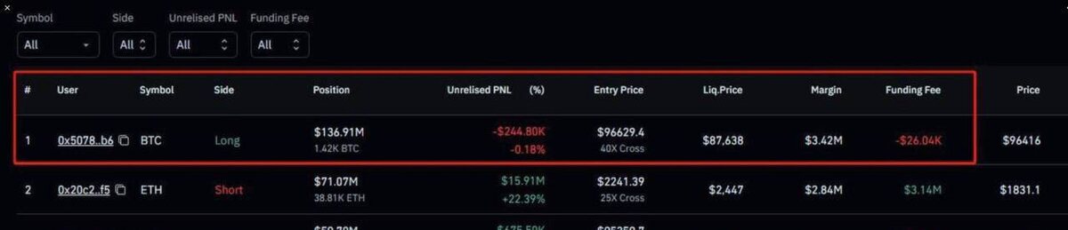 🔥КИТ СДЕЛАЛ ОГРОМНУЮ СТАВКУ НА BTC! $136 МЛН С ПЛЕЧОМ x40 🔥 Один из крупнейших игроков рынка открыл лонг-позицию на Bitcoin на $136 миллионов с кредитным плечом x40! 😳 🟢Точка входа 96,642 🔴Цена ликвидации:87,638 (всего 9% – и сделка сгорит!)😡 😀Риск безумный, но если Bitcoin рванёт вверх – профит будет космическим! 🚀 Как думаете, чем закончится эта ставка? ✅ Заработает – 👍 ❌ Потеряет – 🔥 P.S. Такие сделки – не для слабонервных. Торгуйте осторожно!😏