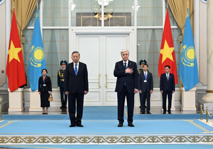Торжественная церемония встречи президента Касым-Жомарта Токаева и генерального секретаря Центрального комитета Коммунистической партии Вьетнама То Лама состоялась в Акорде, передает «24KZ». В Акорде состоялась официальная церемония встречи Генерального секретаря Центрального комитета Коммунистической партии Вьетнама То Лама, прибывшего с государственным визитом в нашу страну. Касым-Жомарт Токаев и То Лам представили друг другу членов делегаций, после чего начальник роты почетного караула отдал приветственный рапорт, прозвучали государственные гимны Казахстана и Вьетнама.