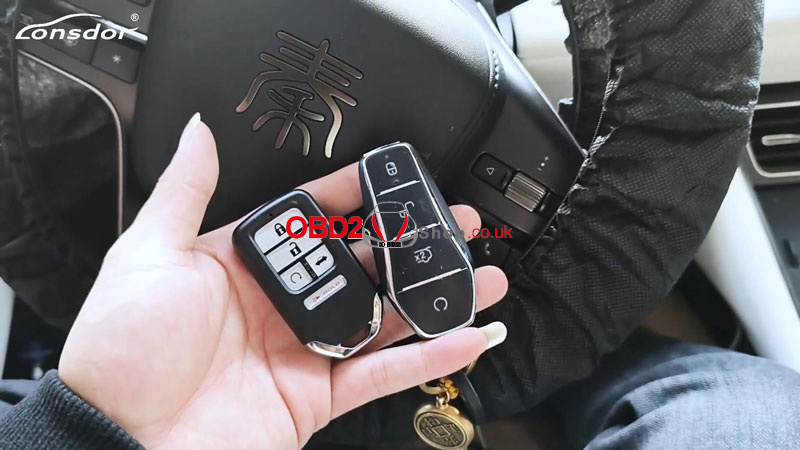 Вот оригинальные ключи автомобиля и новый ключ. Мы используем Lonsdor K518 PRO для программирования добавления ключей для BYD Qin L 2024 по OBD.
