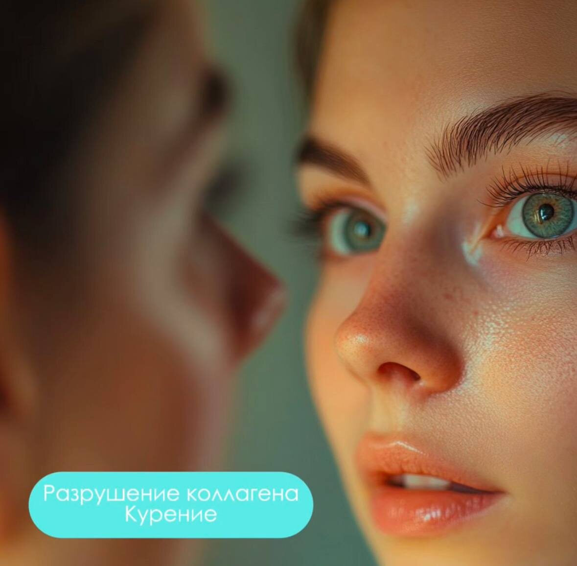 Компоненты табачного дыма, такие как бензопирен, также повреждают коллагеновые волокна и способствуют образованию свободных радикалов, ускоряя процесс старения кожи.