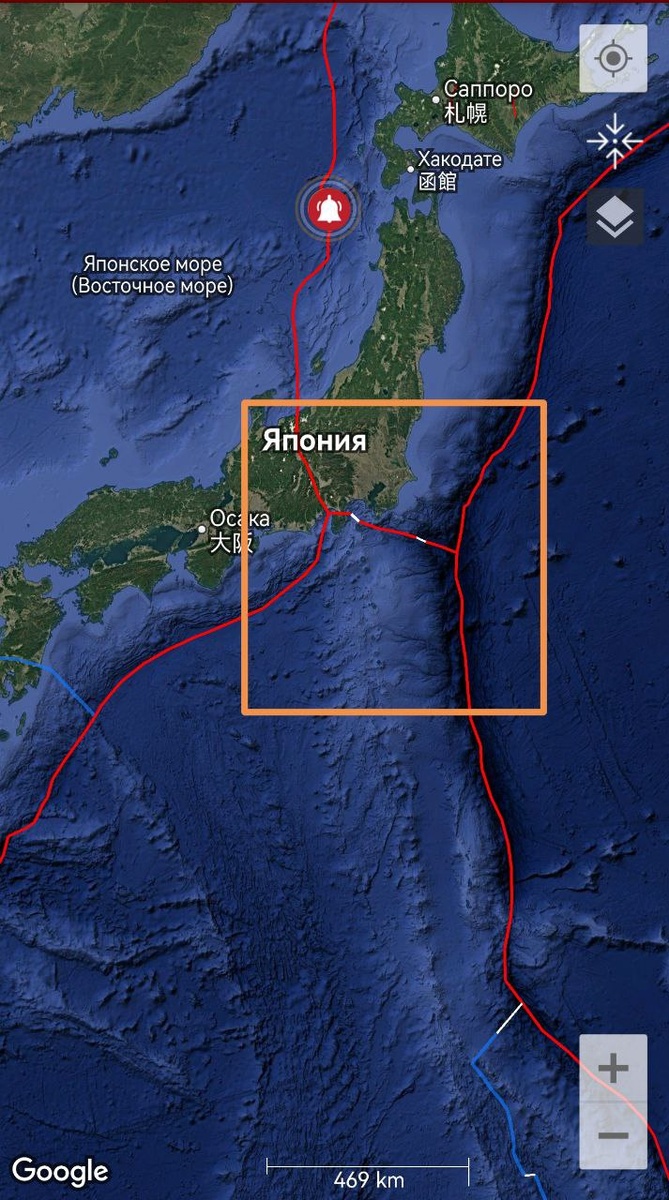 В ответ на пост У Японии по типу провала в облачности сместилась на юг зона стыка 4-х плит. ==== In Japan, the zone of junction of 4 plates shifted to the south according to the type of cloud gap.