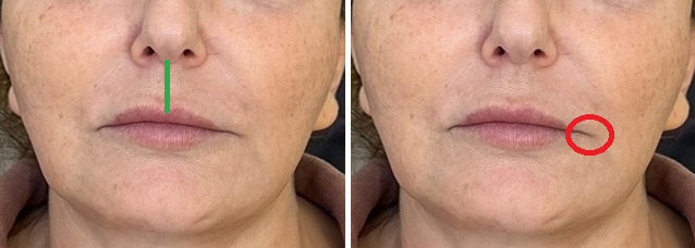 Здравствуйте, уважаемые читатели моего блога. Наверное, я никого не удивлю, если скажу, что чаще всего на макияж приходят женщины не просто накраситься, а получить какой-то вау-эффект, визуально стать свежее и моложе лет на 5-7. А некоторые женщины желают попробовать на себе макияж, который увидели где-то в сети. И зачастую женщины с возрастом становятся недовольны своими губами, даже легкая коррекция у косметолога не дает нужный результат, а перекачивать губы не хочется. Сегодня хочу рассказать, как при помощи макияжа можно добиться эффекта пухлых губ. Сразу скажу, что вариант не для всех, и многим из вас, скорее всего, он не понравится. Однако данный вариант макияжа губ визуально очень омолаживает. Итак, на фото видно, что у женщины есть асимметрия, однако визуально старит ее два момента: Для того, чтобы "собрать" губы, визуально замаскировать возрастные изменения, необходимо карандашом в районе арки чуть выйти за контур (показала на фото ниже зеленым цветом схематично). Эта проработ