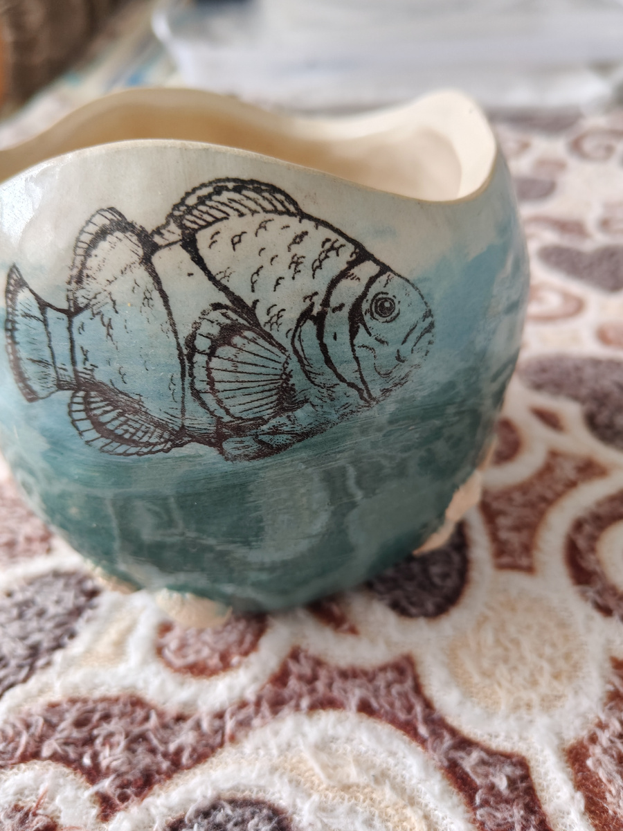 Следующая посудина... Не знаю как назвать это штуковину официально )... уже успешно эксплуатируется. Сейчас как раз сфоткала у человека, которому подарила её. Угадайте как используют её))) В конец поста напишу ответ . Вдохновлено при изготовлении арктическим хенд мэйдом, который активно сейчас на Севере нашей Родины крафтится ). Правда в итоге там появился краб только, а потом куда-то ушла в средиземноморье по стилистике. Минутка занудства: высота примерно 20 см, диаметр примерно 10 см. Рулетку с собой не таскаю, размеры на глаз, а глазомер дело субъективное ).