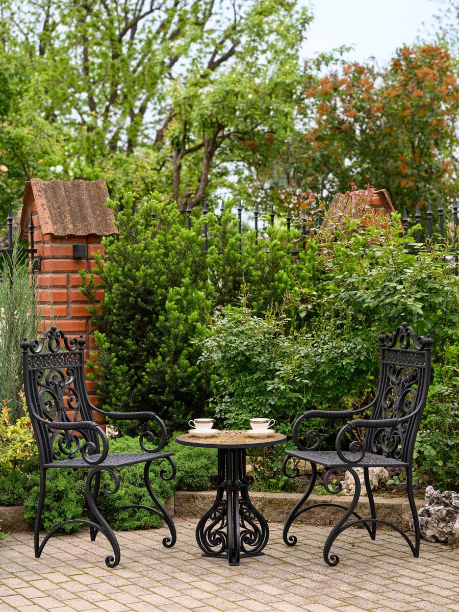 Комплект кованой мебели от мастерской металла МАРКЕТРИ 🟢 Великолепный тяжеловесный гарнитур ручной ковки с элементами перфорированого металла. Два кресла и стол со столешницей из латуни, состаренной в ручную. Станут украшением цветущего сада или открытой веранды! Ковка от Маркетри - это настоящий эксклюзив для ценителей роскоши 🥇