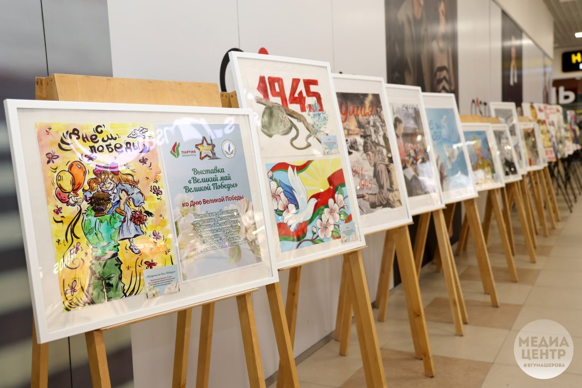 🖼6-го мая, в преддверии Дня Победы, в торгово-развлекательном центре «Трио» открылась выставка «Великий май Великой Победы», посвященная 80-летию Победы советского народа в Великой Отечественной войне. Право торжественно открыть тематическую выставку было предоставлено ректору ВГУ имени П.М. Машерова Валентине Богатырёвой. 📌🟥Организаторами выставки, которая проходит второй год подряд, выступают Витебский государственный университет имени П.М. Машерова и Витебское областное отделение Белоруской партии «Белая Русь». ⭐️Экспозицию составили более 45 экземпляров художественных работ, которые были созданы представителями различных поколений со всей Витебщины, в том числе и руками студентов-машеровцев. Также посетители могут ознакомиться с агитационными плакатами военного и послевоенного времени и с проектом «Шталаг 354», раскрывающим факты о лагере для военнопленных в Боровухе, где уничтожили более 18 тысяч человек. ❗️Выставка будет работать по 13-е мая и ее можно посетить с 10:00 до 2