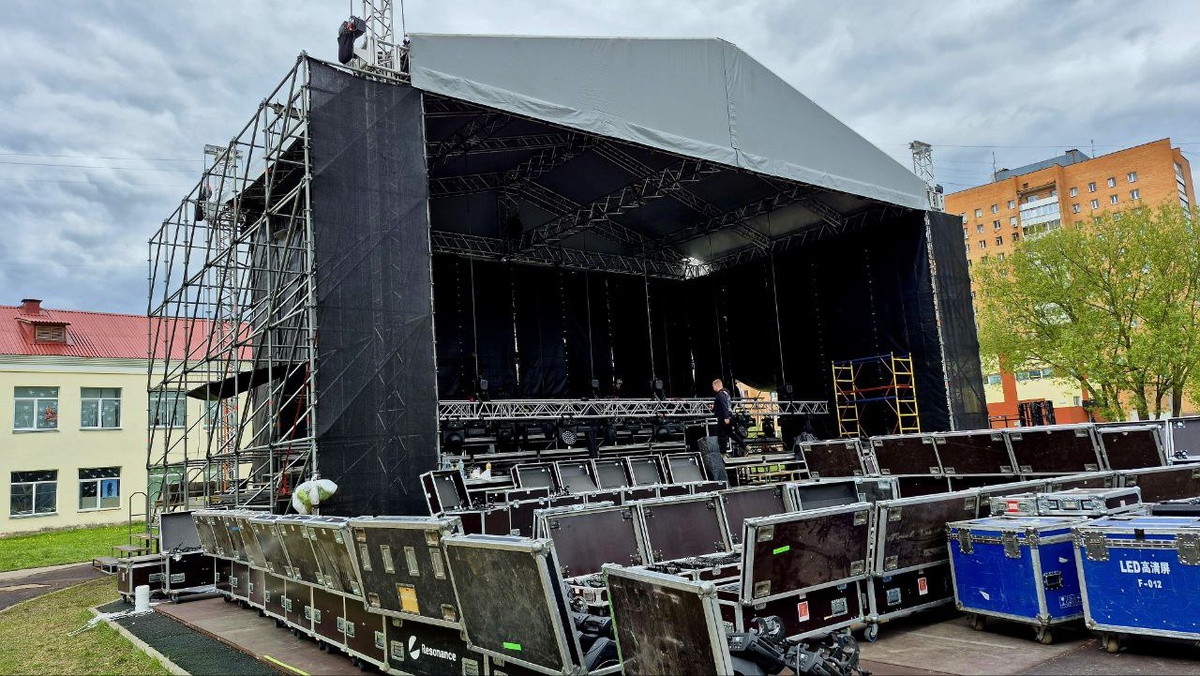 🧧В Дубне завершается обустройство сцены и трибун для грандиозного исполнения "Ленинградской" симфонии на День Победы в Дубне