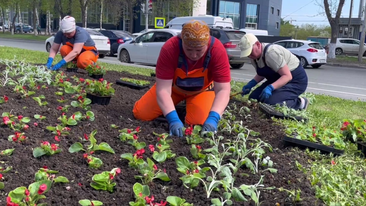 «Прямо сейчас перед стелой района идет активная посадка цветов. Далее посадка будет осуществляться и по другим клумбам, в планах высадить 45 тысяч цветов», – отметил Рустем Хамитов.