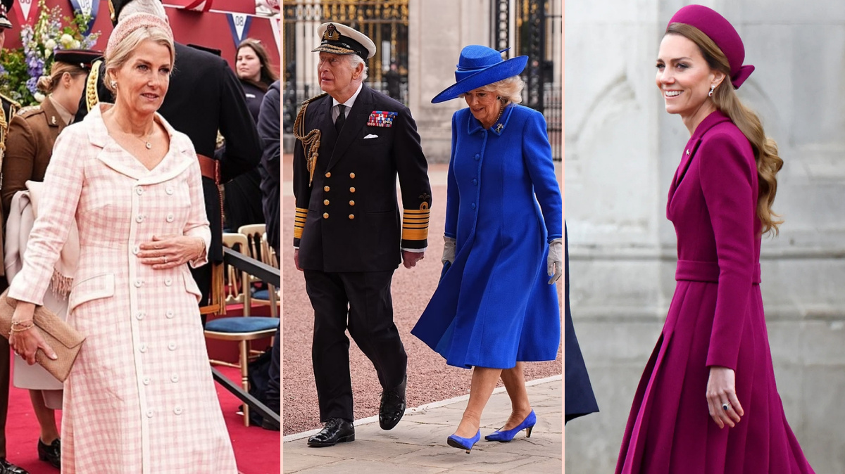 Королева Камилла появилась в ярком синем наряде. Шляпа и туфли были подобраны в тон, а вот перчатки она предпочла бледно-голубые. Королева завершила наряд жемчужным ожерельем, брошью и сапфировыми серьгами.