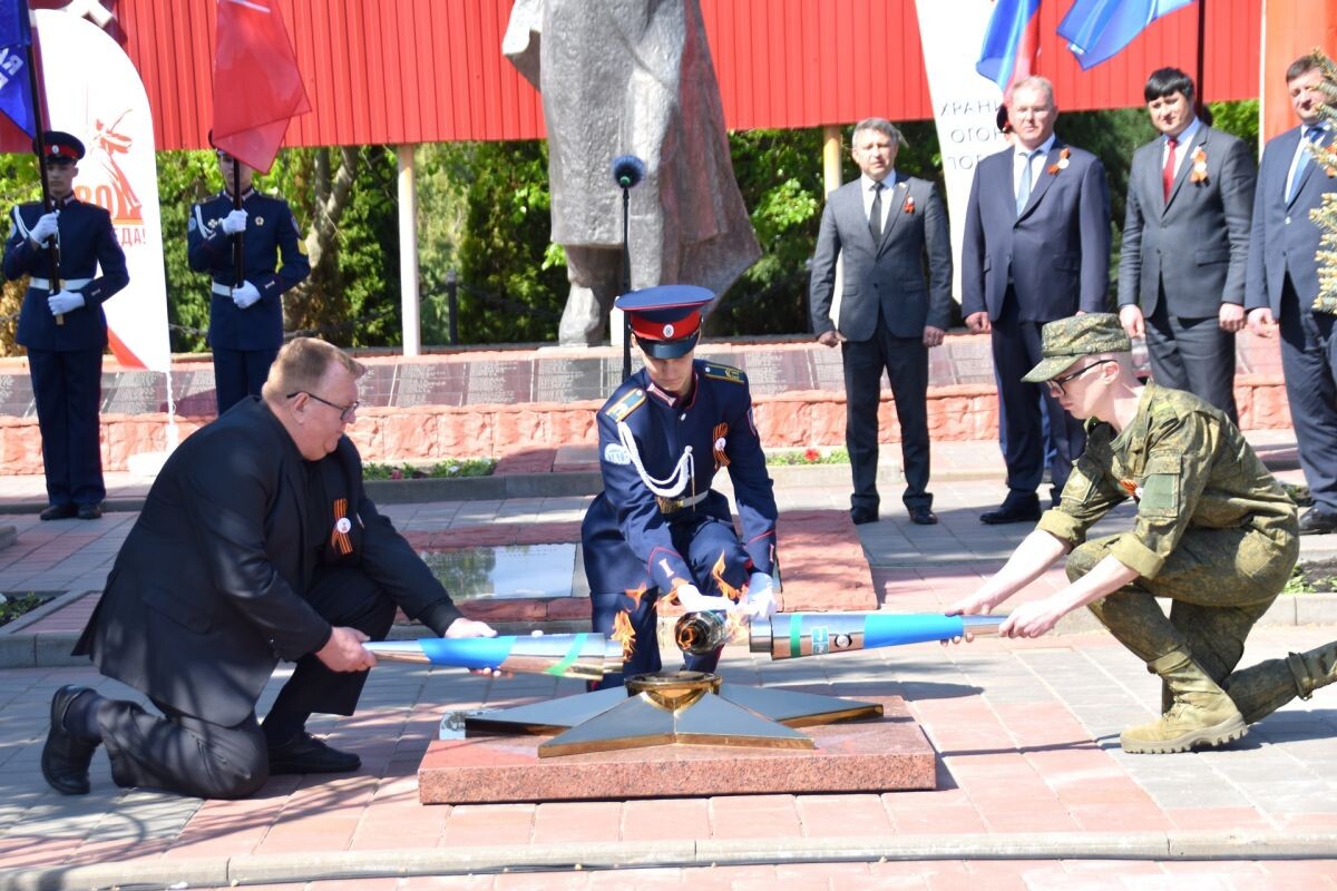 Сегодня, 6 мая, в рамках Всероссийской акции «Храним огонь Победы» ПАО «Газпром» и «Единой России» одновременно по всей стране были зажжены 80 Вечных огней. Один из них – в станице Алексеевской. Вечный огонь теперь будет гореть на постоянной основе на Мемориале защитникам Отечества, расположенном в парке имени Почетного гражданина Алексеевского района Виктора Андреевича Новикова. На торжественный митинг, посвященный этому значимому событию в жизни алексеевцев, собралось большое количество станичников и гостей районного центра. В числе почетных гостей вместе с и.о. главы Алексеевского муниципального района Русланом Зрянинымприсутствовали врио заместителя губернатора Волгоградской области Эдуард Кривов, генеральный директор ООО «Газпром газораспределение Волгоград» Александр Сидоров, депутат Волгоградской областной Думы Дмитрий Пополитов. Почетное право зажечь Вечный огонь было предоставлено представителям трех поколений: председателю Алексеевского районного Совета ветеранов Владимиру