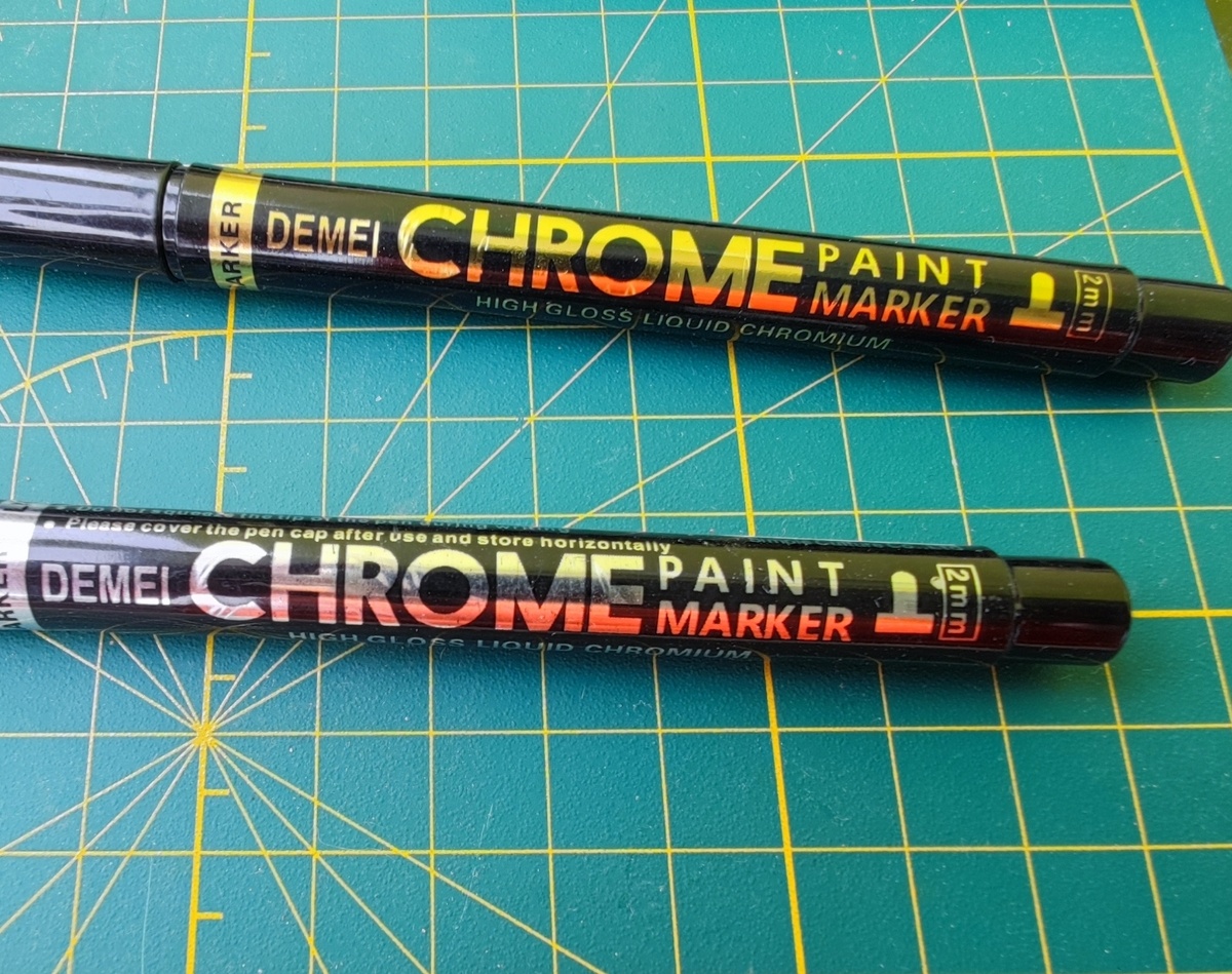 Что это и зачем он нужен? Хром-маркер - это специализированный маркер с краской, создающей эффект настоящего зеркального хрома на различных поверхностях. Как работает хром-маркер? Внутри маркера находится жидкая краска, имитирующая зеркальный блеск металла. Краска равномерно ложится на гладкие, не впитывающие поверхности: металл, стекло, пластик, резина. После высыхания покрытие сохраняет глянцевый зеркальный вид и не тускнеет. Удобно ли им пользоваться? Хром-маркер очень прост в применении и не требует специальных навыков - достаточно встряхнуть маркер, пропитать наконечник, и можно наносить покрытие. Доступен в разных толщинах пера (от 1 до 5 мм), что позволяет работать как с мелкими деталями, так и с крупными поверхностями. Я для себя выбрал среднюю толщину пера. Можно использовать для точечной реставрации, подкрашивания, выделения элементов или даже для создания целых декоративных панелей. Мгновенный зеркальный эффект - результат виден сразу после нанесения. Где может быть п