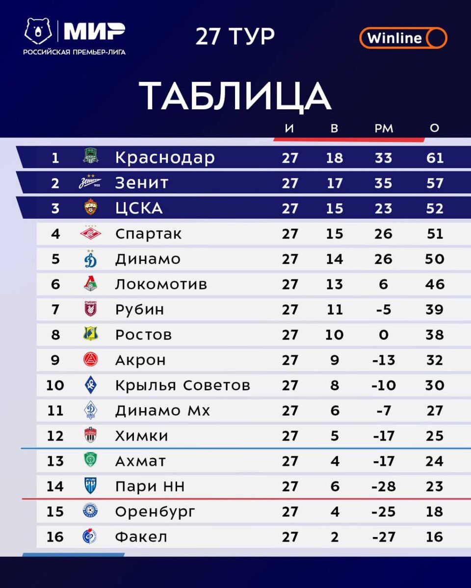 Осталось три тура до окончания сезона. Итоги мне видятся следующими: - Краснодар - чемпион - Зенит - второй - Оренбург и Факел вылетают напрямую. - В стыках будут видимо Пари НН и Химки. И только за бронзу развернётся нешуточная борьба - ЦСКА, Спартак или всё же Динамо?