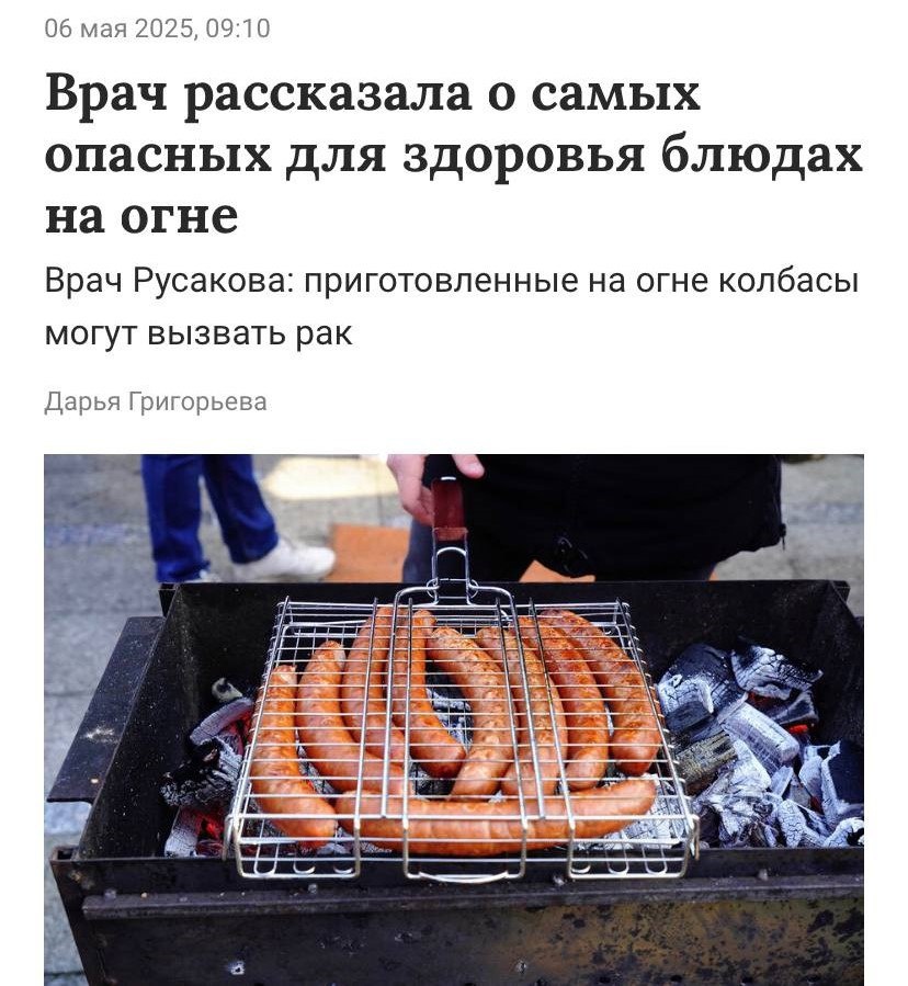 Представьте: ароматный дым, сочное мясо, хрустящая корочка… Но что, если ваш любимый шашлык медленно разрушает здоровье? Самые опасные блюда на огне Диетолог Дарья Русакова предупреждает: **колбаски, сардельки и маринованное мясо на кости** – главные враги вашего организма. Почему? -Жир + огонь = канцерогены 🔥➡️☠️ При жарке жир окисляется, образуя вещества, провоцирующие рак. - Пережаренное мясо = бомба замедленного действия Чем сильнее зажарили – тем больше вредных соединений. - Маринад-убийца: соль + сахар + майонез = отёки, скачки давления и удар по почкам. Как жарить мясо без вреда? ✅ Выбирайте нежирную говядину, индейку или курицу. ✅ Готовьте на слабом огне – без углей «до углей». ✅ Откажитесь от магазинных маринадов – меньше соли, больше зелени и лимонного сока. А что, если вообще отказаться от мяса? Диетолог Нурия Дианова предлагает растительные аналоги – они такие же вкусные, но в разы безопаснее. 💡 Помните: недавно ученые назвали продукт, повы