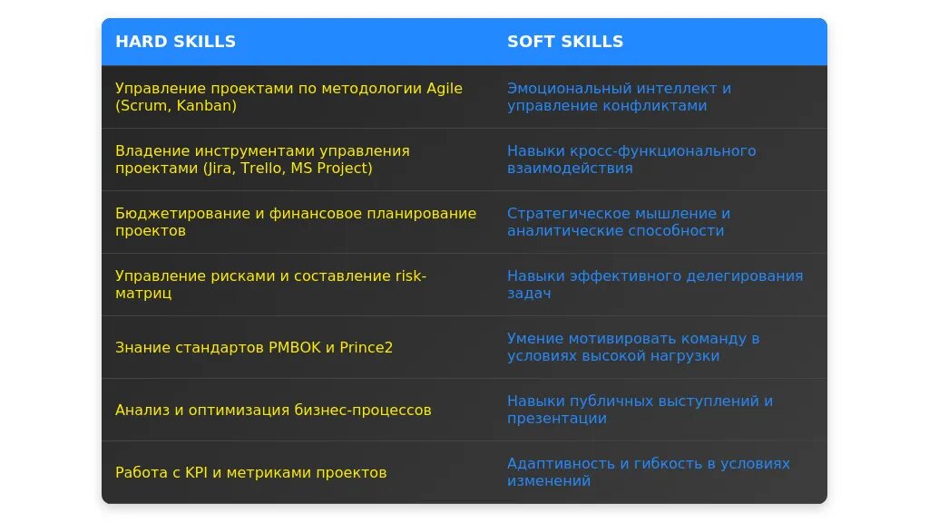 На какие навыки делать акцент: Базовые навыки управления проектами (Agile, Scrum), работа с инструментами (Trello, Asana), коммуникация.