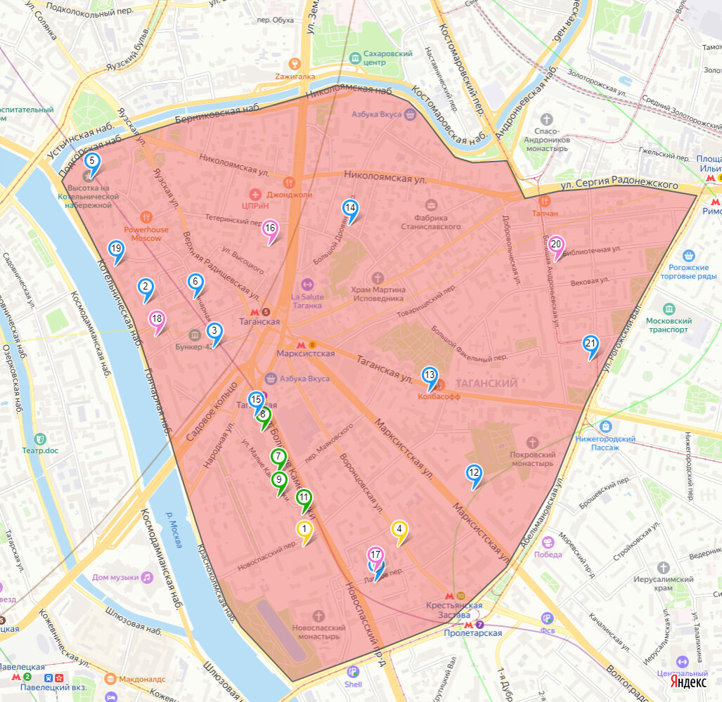 Друзья, добрый день, продолжаем цикл статей о Центре Москвы. Уже были Остоженка, Китай-город, Арбат, Тверской, Замоскворечье, Патриаршие, Хамовники, Пресня, Москва Сити, Новослободская, Мещанский и Чистопрудный. Движемся дальше. Сегодня - Таганский. Жилой массив Таганский плюс-минус совпадает с границами административного района, но, как премиальная локация чуть менше одноименного района. Примерно так: Из интересного - Бункер-42, музей, посвященный Холодной Войне. В Таганском районе - одни из самых красивых московских сталинок: Из современных комплексов, смотрите: Симфония Набережных, Шоколад, 11 Станиславского, Котельническая 31, Mostman Строящегося в данный момент ничего нет :-( А мы с Вами попробуем найти интересные варианты по соотношению цена/качество: 2-ой этаж 5-этажного кирпичного дома 1962 года постройки. 9 минут до станции "Площадь Ильича" желтой ветки. Стоимость за кв.м - 465 000 рублей Ссылка на ЦИАН - https://www.cian.ru/sale/flat/305620696/ 13-ый этаж 17-этажной панельки