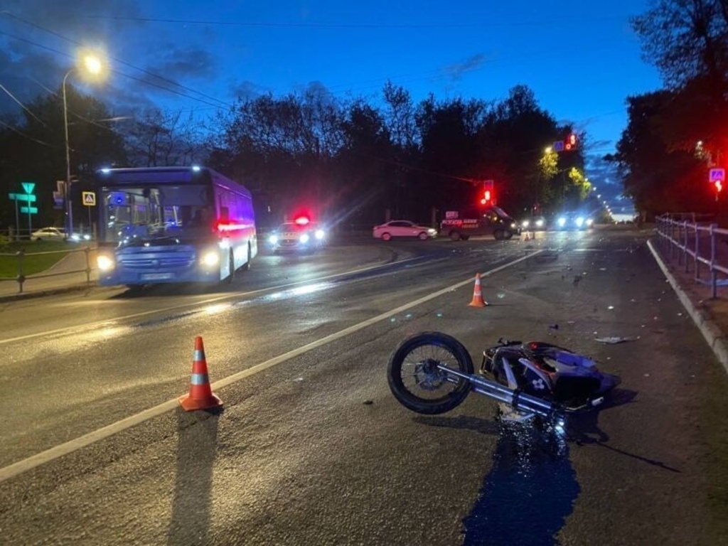 В Серпухове мотоцикл попал в ДТП, пытаясь проскочить на красный свет