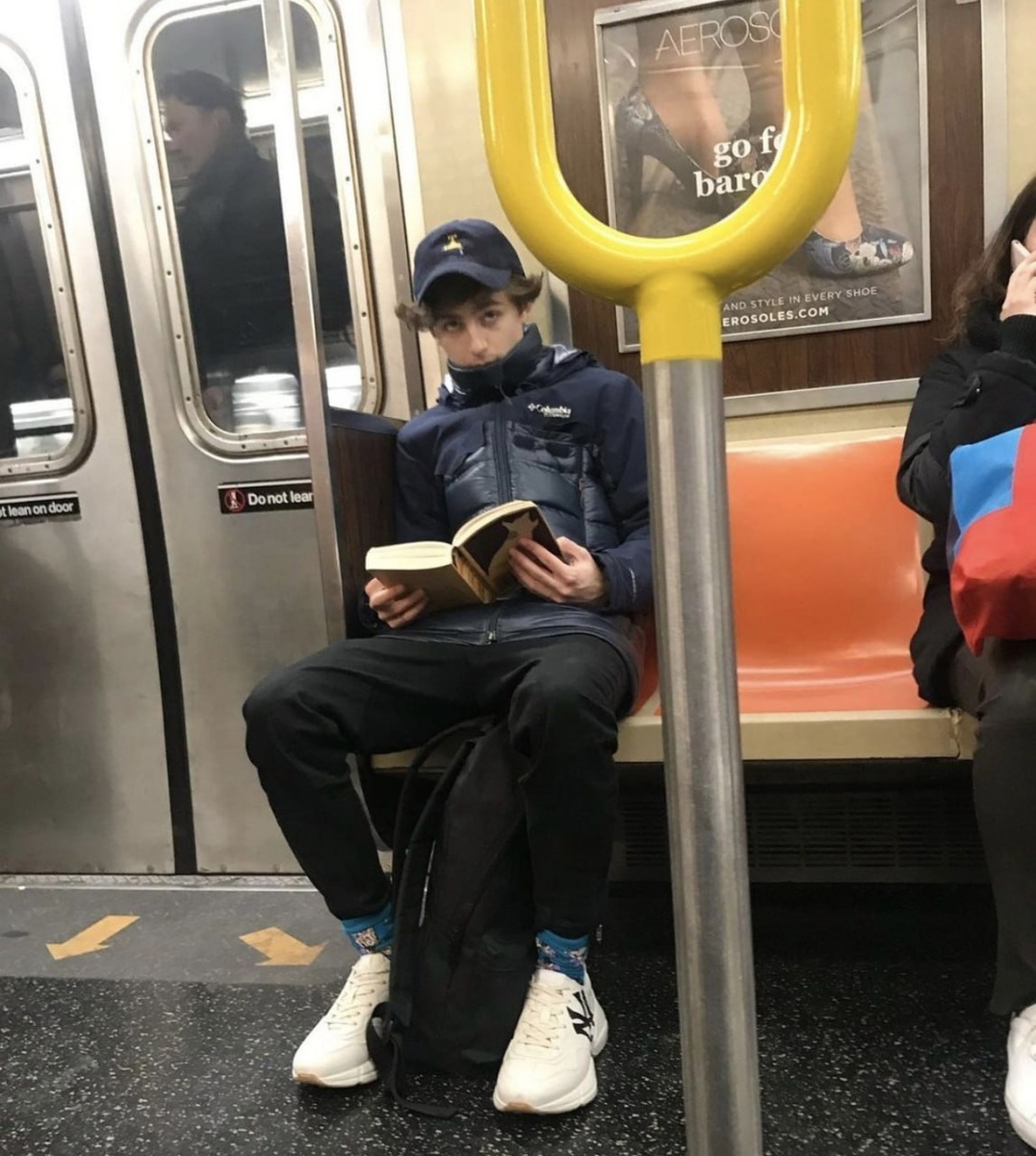 🔥 Тимоти Шаламе читает «Дюну» в Нью-Йоркском метро.