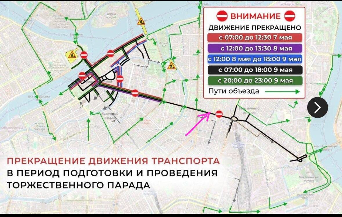 9 мая перекроют весь невский проспект от Дворцовой площади до Александра Невской Лавры и близлежащие улицы