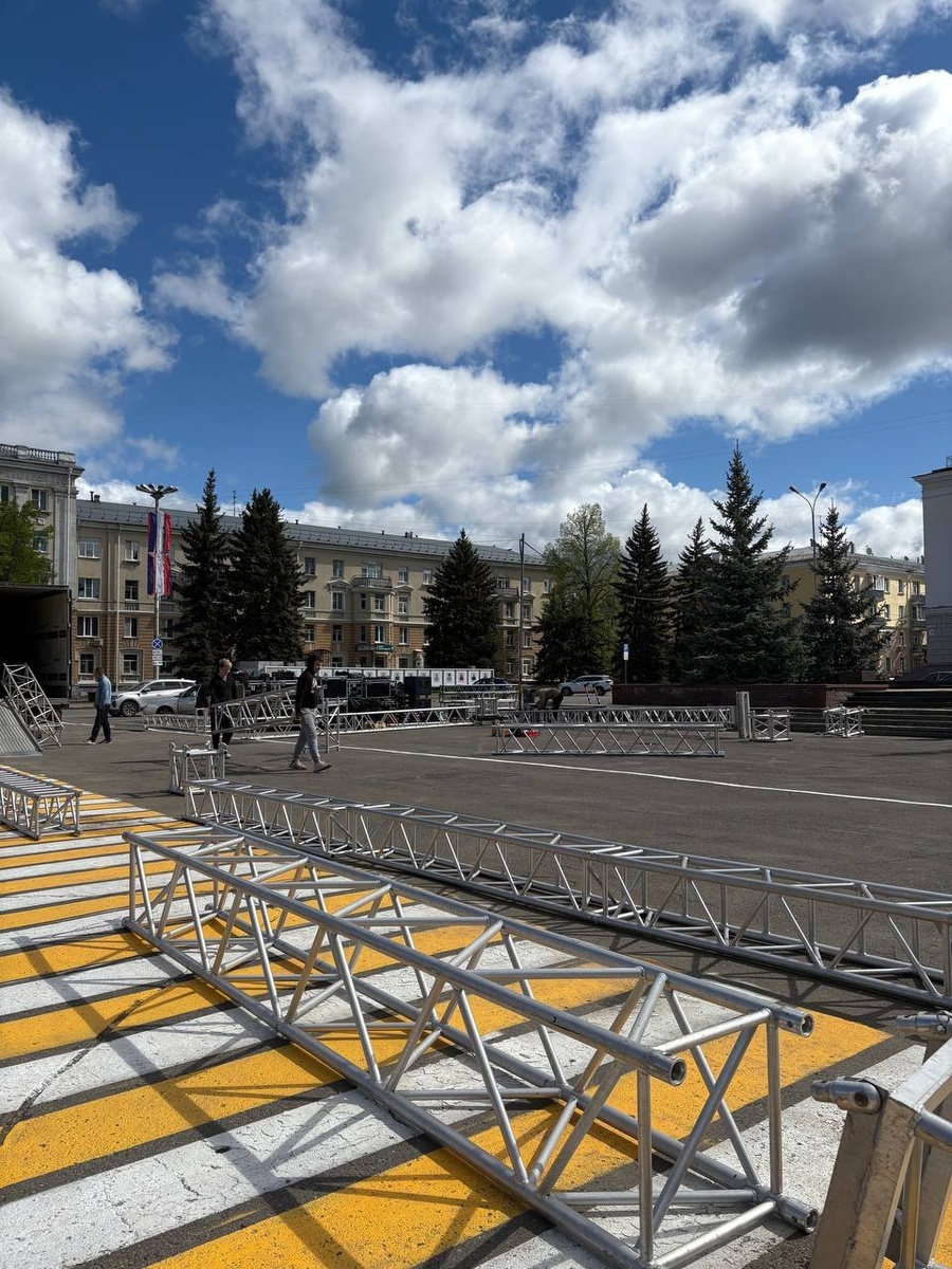 ↗ На площади Ленина уже начали собирать сцену для концертной программы Дня Победы