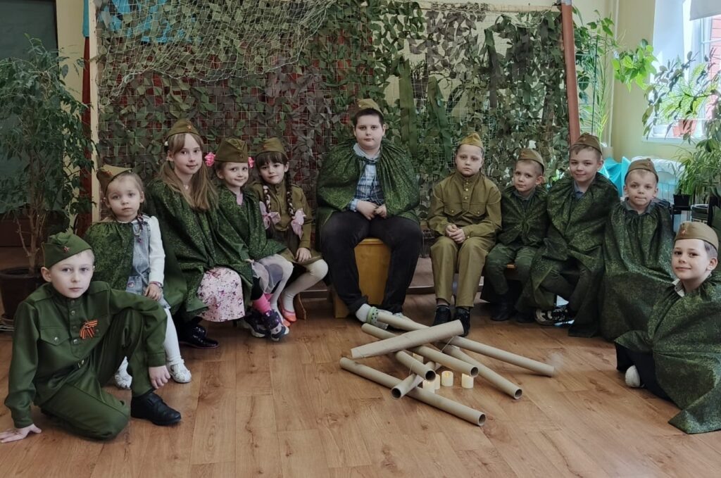 Воспитанники воскресной школы «Благовест» Пантелеимоновского храма в Мытищах подготовили праздничные открытки и музыкальное поздравление в преддверии 80-летия Победы в Великой Отечественной войне. В видеопослании дети постарались воспроизвести обстановку военного времени, собравшись «на привал» у импровизированного костра на фоне маскировочных сетей, выполненных волонтёрами при храме, чем подчеркнули связь времен и преемственность поколений. Поздравление будет направлено нашим защитникам Отечества, находящимся на лечении в больнице. Детское видеопоздравление снял и смонтировал клирик Пантелеимоновского храма протоиерей Андрей Кольцов.