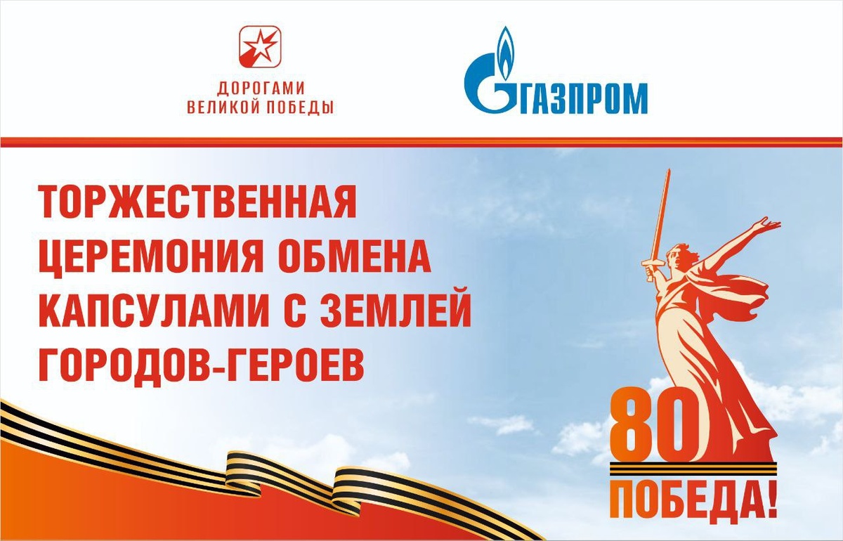 #Победа80 6 мая 2025 года в Волгограде, в музее-панораме «Сталинградская битва», состоится памятное мероприятие, посвященное 80-летию Победы в Великой Отечественной войне. В рамках торжественной церемонии пройдет обмен капсулами с землей городов-героев — символом вечной памяти о подвиге защитников Родины. Земля с памятных мест Сталинграда (Волгограда), Ленинграда (Санкт-Петербурга), Москвы, Керчи, Севастополя, Новороссийска, Смоленска, Тулы, Мурманска, Минска и Брестской крепости будет доставлена в Волгоград делегациями дочерних обществ и организаций ПАО «Газпром» из различных регионов России и Республики Беларусь. Следите за всеми этапами акции в новом разделе сервиса «Дорогами Великой Победы»: в приложении и веб-версии. Также в 14:00 (мск) будет организована прямая трансляция церемонии в ГИД: в приложении и веб-версии.