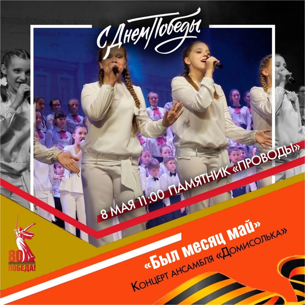 Дорогие горожане! 8 мая приглашаем вас на концерт вокального ансамбля «Домисолька» «Был месяц май», посвящённый 80-летию Победы в Великой Отечественной войне, который состоится на открытой площадке у памятника «Проводы» (перекрёсток улиц Тамбовской и Куйбышева)! Начало — в 11.00! #ПОБЕДА80 #ДМШ1 #годзащитникаотечества #Пензенскаяобласть #культура58 #Пенза2025 #новости_культуры58
