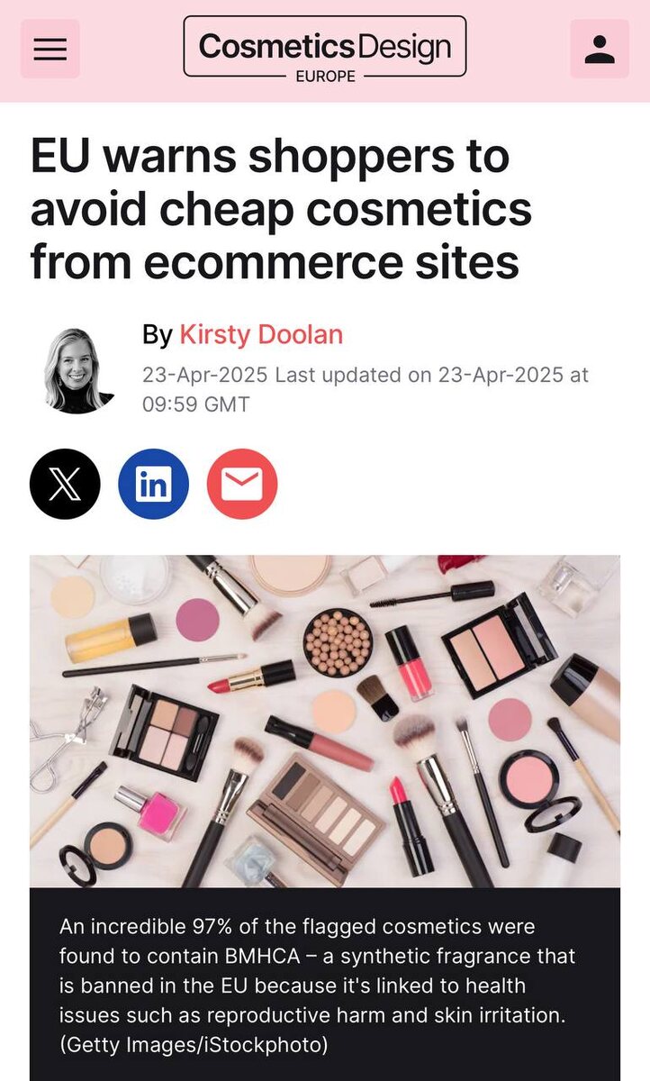 «Лучше уж никак…» European Union предупреждает своих граждан: не покупайте косметику неизвестных дешевых брендов на маркетплейсах. В первую очередь речь идет о ритейлерах Temu и SHEIN. На них в прошлом году зафиксировали рекордные 4137 нареканий. Пропустила между праздниками статью на CosmeticsDesignEurope. Проблема горшочка с no name дешевыми брендами на маркетплейсах есть не только у нас. Уже эксперты Евросоюза призывают поберечь свою кожу. Она у нас самый большое орган, как известно.