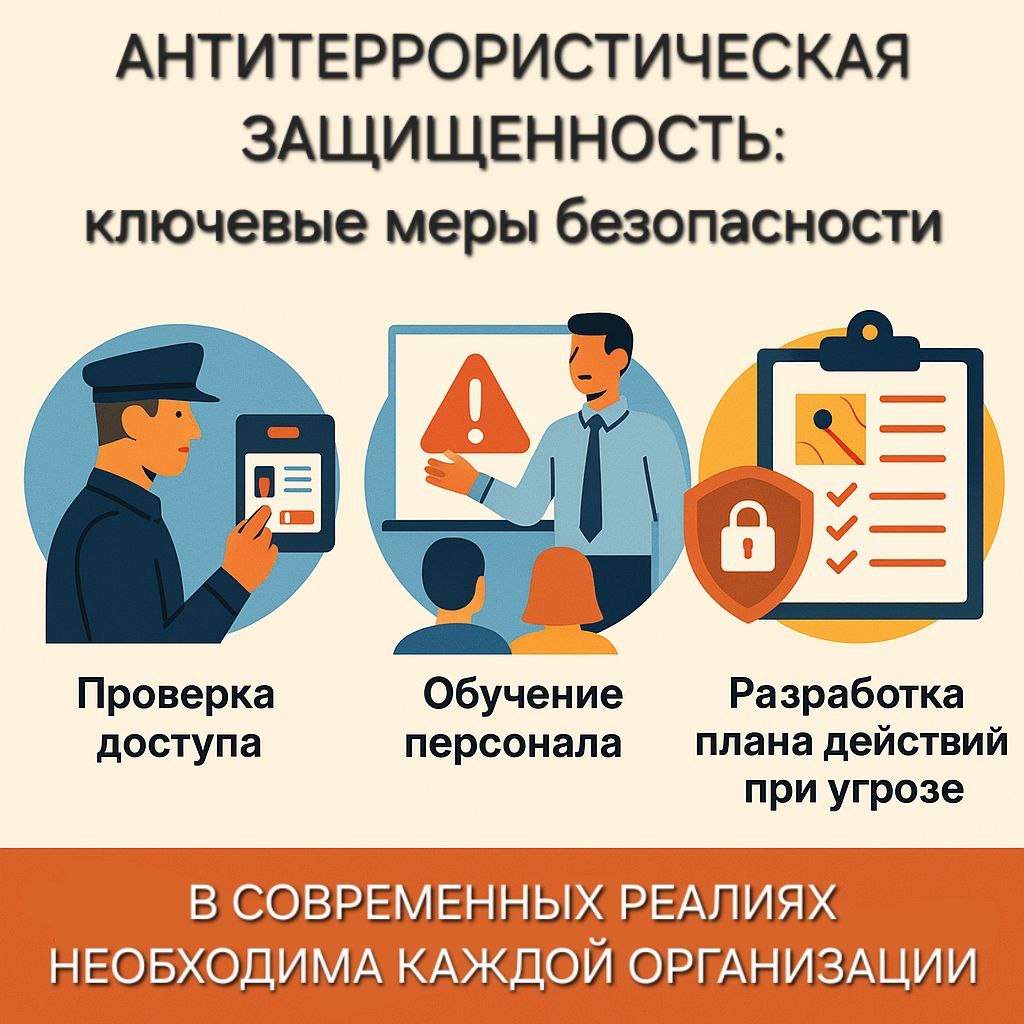 Антитеррористическая защищённость: как сделать так, чтобы ваш объект стал крепостью, а не «мишенью» 🛡️ Представьте: ваши сотрудники спокойно приходят на работу, посетители гуляют без опасений, а имущество защищено получше, чем последний кусок торта в офисной кухне🍰 Вот три главных «урока выживания» в мире безопасности, которые помогут вам держать ситуацию под контролем — и ещё впечатлить друзей-предпринимателей своей предусмотрительностью. ✅«Миссия - не впускаем незнакомцев» 🔐 Вахтер на входе, электронные карты, биометрия — никакой анонимности! Только проверенные лица — никакой «Кто ты такой?» у проходной. ➡️Видеонаблюдение или живые патрули 🎥👮 Камеры наблюдают, охрана действует. Архив на 30 дней — ваш личный «чёрный ящик». А если что-то идёт не так — люди на месте. ➡️Барьерные средства 🚧 Шлагбаумы, столбики, заборы — не пускаем тех, кому тут не место. Всё строго по сценарию. ✅«Прокачай персонал и выживи» 🧠🔥 ➡️Тренировки по сценарию «Что если…» Половина безопасности — эт
