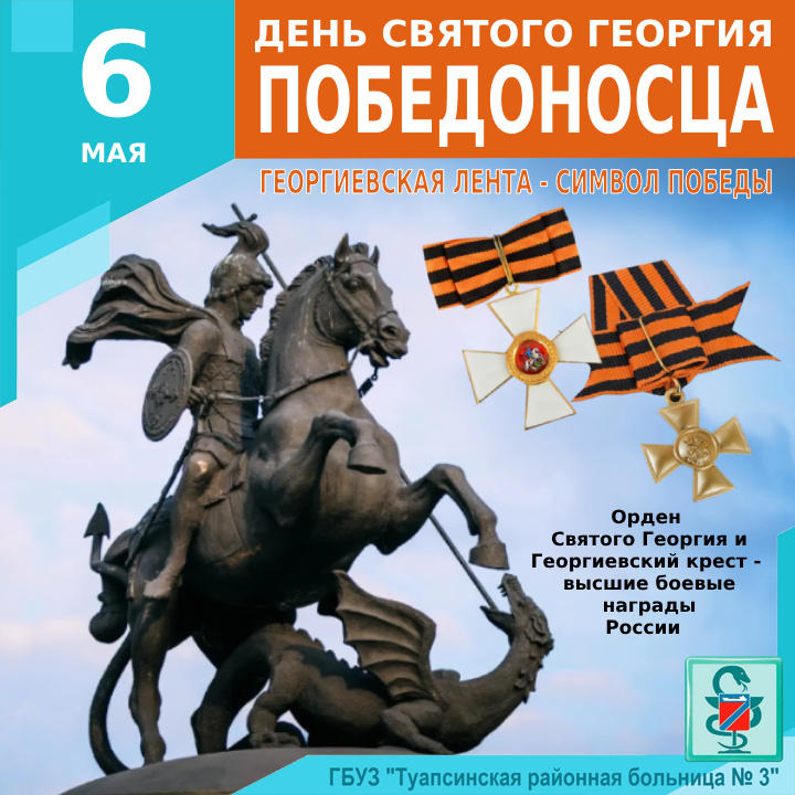 Во время гонений на христиан в Риме Георгий раздал имущество бедным и признался императору Диоклетиану, что верит в единого Бога. Император предложил воину отречься от веры, но тот отказался. Георгия заточили в темницу, заковали в колодки и подвергли многочисленным пыткам. Святого прозвали Победоносцем за то, что он одержал над мучителями духовную победу, выдержав все страдания и не отказавшись от христианской веры. В 494 году папа римский Геласий I канонизировал его как святого. Орден Святого Георгия (полное название — Императорский Военный орден Святого Великомученика и Победоносца Георгия) — государственная награда в Российской империи (1769–1917), Российской республике (1917) и Российской Федерации (с 1992). Учреждён 26 ноября (7 декабря) 1769 года императрицей Екатериной II для награждения офицеров и генералов российской армии за храбрость и военное искусство. Георгиевская лента используется как символ воинской славы России и один из основных символов Дня Победы.