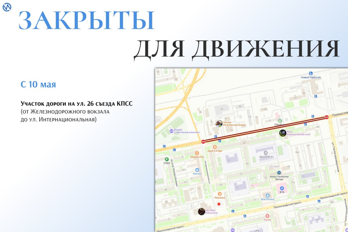 9️⃣🔟🔢 С 10 мая на ремонт закрываются участки дорог Выбирайте заранее пути объезда. Перекрываются: ❤️ улица 26 Съезда КПСС (от Железнодорожного вокзала до улицы Интернациональная) ❤️ улица Таёжная (от улицы Арктическая до улицы Новая) ❤️ улица Новая (от улицы Таёжная до улицы Сибирская) ❤️ улица Геологоразведчиков (от улицы Юбилейная до улицы Молодёжная) ❤️ Импульс Севера