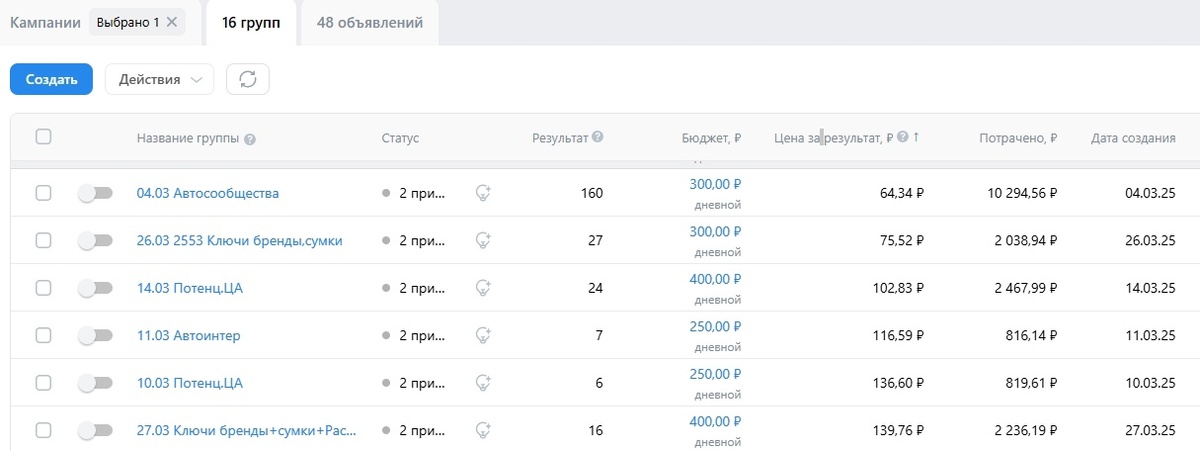 📌 Оффер — скидка 7% на подписку + тематические акции по сезону. Скриншот статистики из рекламного кабинета за март 2025г: Плюс: я делаю рассылки под
