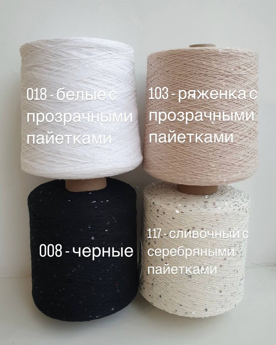 NEW ✨ Микропайетки на хлопке 3мм Хлопок, пайетка 3мм 100г/800м 4,4руб/г 018 - белые с прозрачной пайеткой 008 - черные 103 - ряженка с прозрачными пайетками 177 - сливочная основа, пайетка серебро Как заказать: — сообщения в ВК https://vk.com/malina_yarn — WhatsApp — на сайте https://malina-yarn.ru/index.php?route=product/uni_latest&cat_id=1110