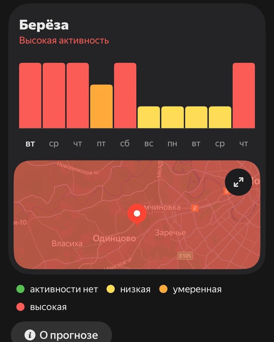 В Москве и Подмосковье наблюдается аномально высокая концентрация березовой пыльцы, которая превышает норму в тысячу раз По словам аллергологов, этот сезон стал особенно тяжелым - у многих жителей столичного региона впервые проявились симптомы поллиноза. Медики объясняют, что мельчайшие частицы пыльцы оседают не только в дыхательных путях, но и на коже, слизистых и в волосах. Поэтому после возвращения с улицы специалисты настоятельно рекомендуют принимать душ, промывать нос и ограничивать проветривание помещений. Особенно опасными считаются утренние часы и ветреная погода, когда концентрация аллергенов достигает максимума. Сильнее всего страдают дети и люди с бронхиальной астмой. Врачи советуют воздержаться от прогулок в березовых рощах и парках, а при ухудшении состояния - незамедлительно обращаться за медицинской помощью. По прогнозам, интенсивное пыление березы продлится еще около недели. @odi_city Источник