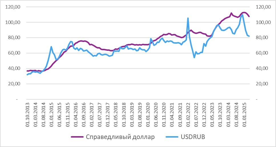 Справедливый доллар относительно наших бюджетных и экономических реалий находится в моменте на уровне 107 рублей за доллар, это чуть ниже