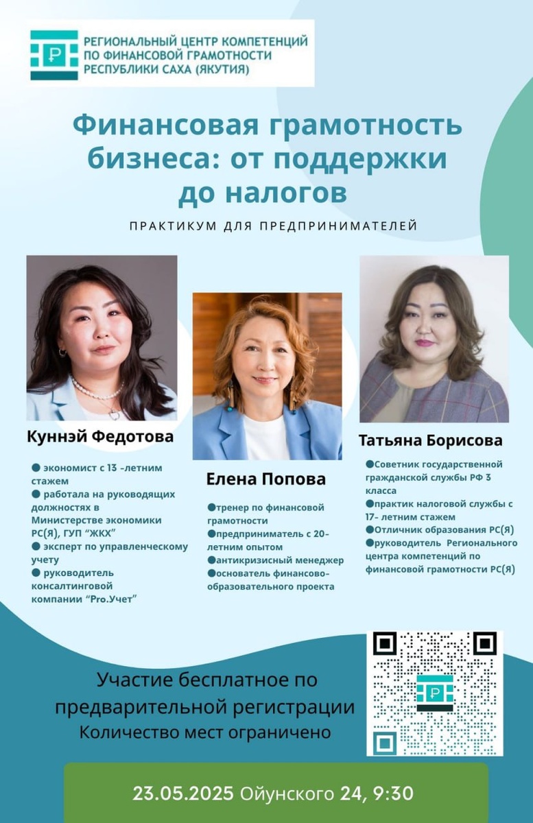 Финграм Якутии приглашает предпринимателей, самозанятых и всех, кто хочет выжать максимум пользы из госпрограмм, оптимизировать налоги и системно увеличивать прибыль на I Практикум «Финансовая грамотность бизнеса: от поддержи до налогов» Что вас ждёт: 10:00–11:15 Федотова Куннэй — эксперт по господдержке: • Как и на что можно рассчитывать: гранты, субсидии, льготные кредиты • Как использовать платформу МСП.РФ на 100% 11:15–12:30 Попова Елена — бизнес-консультант: • Что такое системная прибыль и как её достигать • Как выстроить управленческий учёт и контролировать финансы по-взрослому 12:30–13:00 — Обед 13:00–14:30 Борисова Татьяна — налоговый практик: • Подберём оптимальный налоговый режим под ваш бизнес • Научимся заполнять декларацию правильно и без паники. Практика. Ответы на ваши вопросы. Реальные инструменты. Количество мест ограничено — регистрация обязательна! Записаться: https://forms.gle/bVWvZmUd8SSK3vTq5