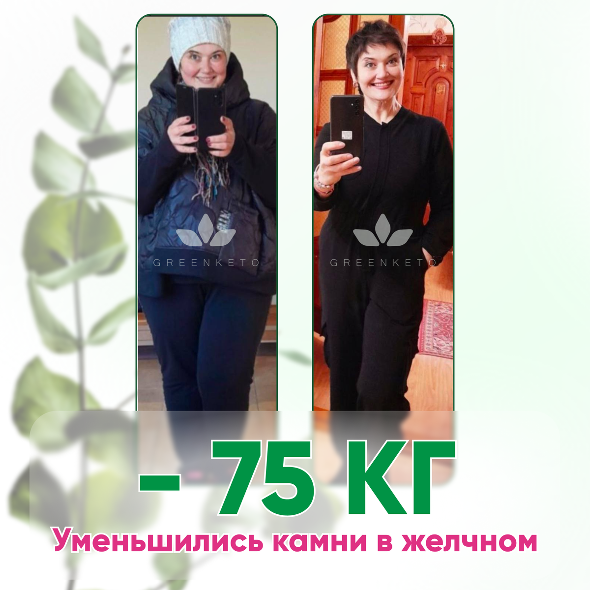 И — тотальное разочарование от всех диет мира. «Пробовала всё. После каждой попытки — только хуже. Вес стоял или рос. Энергии не было совсем. Хотелось спрятаться от себя и мира». Она увидела истории других женщин, которые худели по моей запатентованной методике GREENKETO на
