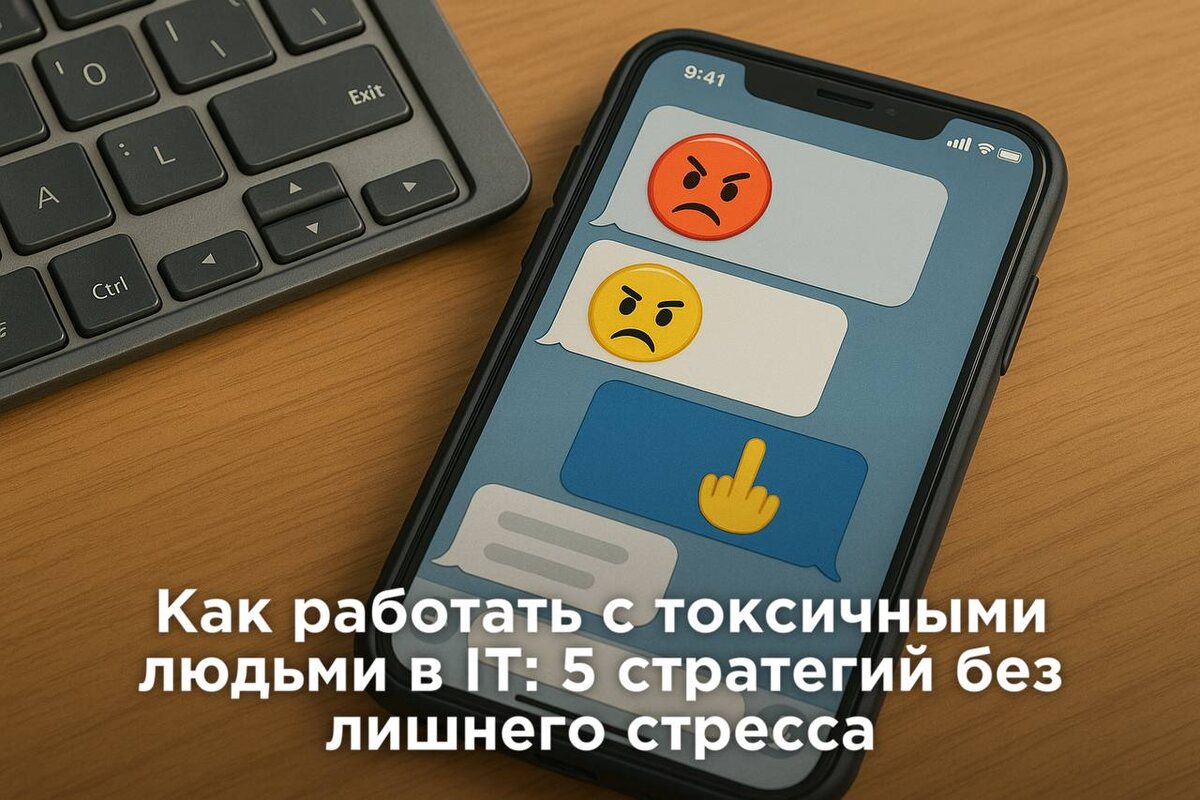 Как работать с токсичными людьми в IT: 5 стратегий без лишнего стресса Токсичные люди в IT — как зловредный баг: даже если команда в огне, один человек может всё испортить. Это может быть заказчик, который всё знает лучше, коллега из смежного отдела, срывающий дедлайны, или стейкхолдер, давящий сарказмом. 😫 Даже если твоя команда — мечта, по работе всё равно приходится сталкиваться с токсичностью: критикой, манипуляциями или хаосом. Сегодня делюсь 5 стратегиями, чтобы работать с токсичными людьми, сохраняя нервы и мотивацию. Плюс разберу ошибки, которые всё ломают. ⬇ 📌 Что такое токсичность и почему она мешает? Токсичность — это поведение, которое отравляет работу: пассивная агрессия, перекладывание вины, неуважение или хаотичные требования. В IT, где всё держится на коммуникации, это убийца продуктивности. 📌 Признаки, что вы столкнулись с токсичным человеком Чтобы не утонуть в негативе, ловите сигналы: 🔹 После общения с кем-то вы чувствуете раздражение или опустошение. 🔹 Тре