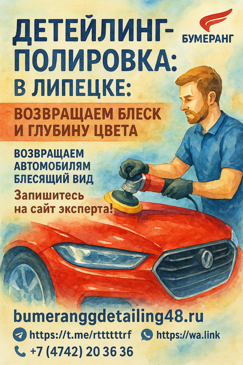 Автомобиль — это не просто средство передвижения. Это отражение стиля, вкуса, отношения к себе и к жизни. Однако с годами даже самый ухоженный кузов теряет свою привлекательность: краска тускнеет, появляются микротрещины, паутинка, легкие царапины от веток и моек. Но есть способ вернуть машине тот самый эффект «из салона» — это детейлинг-полировка. Сегодня расскажем, как работает эта процедура, кому она нужна и почему жители Липецка всё чаще выбирают детейлинг-полировку именно в «Бумеранге». Детейлинг-полировка — это не просто полировка, как на обычной автомойке. Это многоэтапная, аккуратная и глубоко профессиональная обработка кузова, направленная на восстановление внешнего вида лакокрасочного покрытия (ЛКП) и защиту от дальнейших повреждений. Она включает: На это влияет множество факторов: Все эти воздействия образуют микроповреждения на лаке, которые искажают свет и делают цвет «уставшим», а блеск — матовым. Детейлинг-полировка подходит всем, кто хочет: ✅ Вернуть автомобилю блеск и
