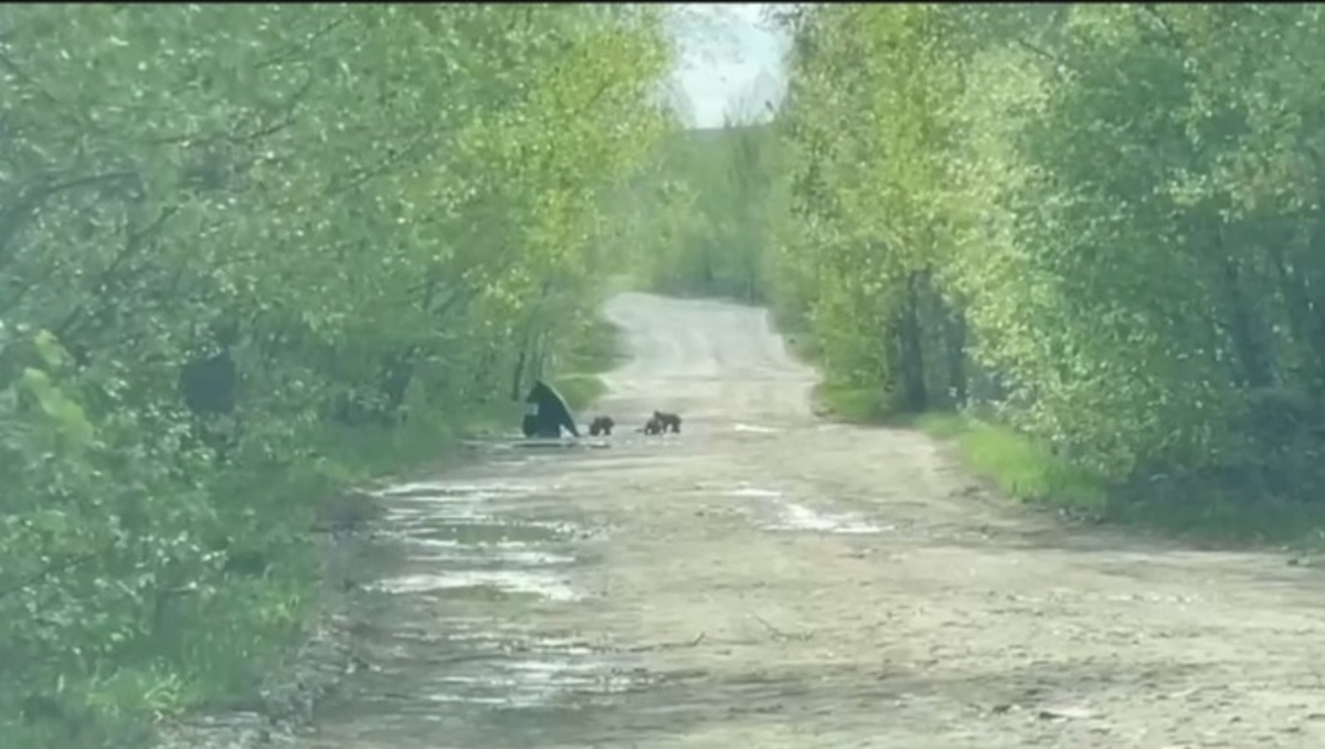 В Башкирии туристы встретили на дороге медвежье семейство