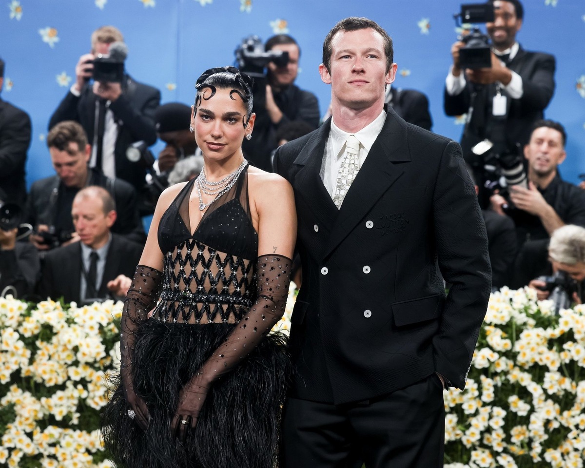 29-летняя Дуа Липа и 35-летний Каллум Тернер успели обручиться, но не выйти вместе в свет. Пара отложила свой светский дебют до красной дорожки бала института костюма Met Gala. Певица выбрала наряд от Chanel — черное платье в стиле 1920-х годов с прозрачной горловиной, перекрещивающимся лифом и юбкой из перьев. Дуа дополнила образ черными оперными перчатками, бриллиантовыми украшениями и прической с зализанными локонами — трендом бала в 2025 году. Актер же выглядел элегантно в черном двубортном костюме, белой рубашке, черных туфлях и узорчатом галстуке Chanel цвета слоновой кости. Напомним, впервые Дуа и Каллум были замечены вместе в январе 2024 года.