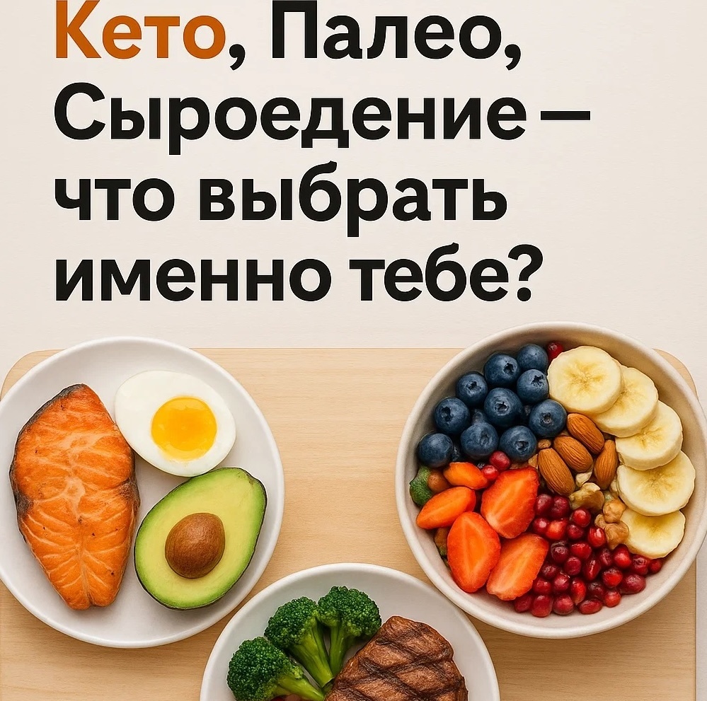И какую из них выбрать именно тебе? Привет, друзья! 🌞 Сейчас столько диет и подходов к питанию, что можно легко запутаться. Кто-то сидит на кето, кто-то ест «как пещерный человек» по палео, а кто-то вообще перешёл на сыроедение и хрустит морковкой без термообработки. Но чем действительно отличаются эти подходы? И что из них полезно, а что может подойти не всем? Сегодня разберёмся — простым языком, по-честному и без фанатизма ✌️ 🔥 Кето-диета: жиры — это сила Кето (или кетогенная диета) — это система питания, в которой почти исключаются углеводы. Основу рациона составляют жиры (70–75%) и белки (20–25%), углеводы — не более 5–10% в день. То есть, ни тебе хлебушка, ни каши, ни сладостей. Зато — авокадо, лосось, масло, орехи, яйца и мясо. 📌 Как это работает? Когда ты почти не ешь углеводы, организм переходит в состояние кетоза — начинает использовать не глюкозу из сахара и хлеба, а кетоны, которые образуются из жиров. В итоге ты: ✔️ Сжигаешь свои жировые запасы ✔️ Теряешь вес ✔️ Чувству