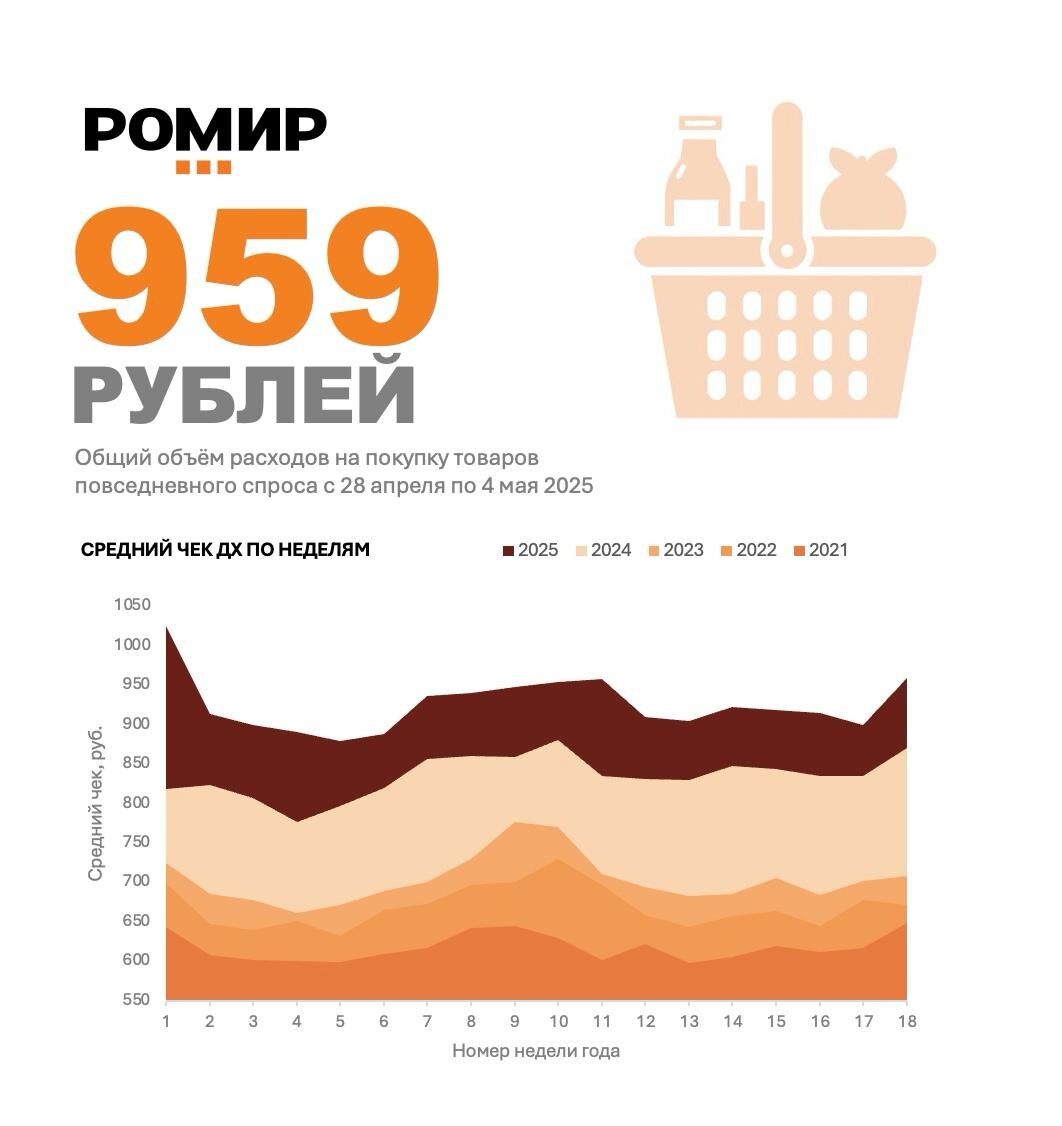 959 рублей составил размер среднего чека на прошедшей неделе с 28 апреля по 4 мая