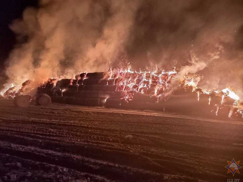 Сгорело 120 тонн соломы в Брестской области. Посмотреть