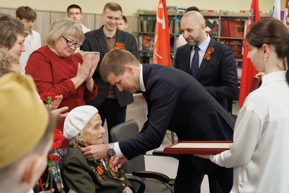 Депутат Госдумы Геннадий Панин и глава Орехово-Зуевского городского округа Руслан Заголовацкий в торжественной обстановке вручили знак «Почетный житель Московской области» Александре Алешиной.