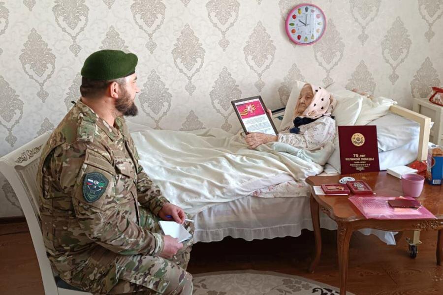В преддверии 80-й годовщины со Дня Победы советского народа в Великой Отечественной войне военнослужащие отдельной ордена Жукова бригады оперативного назначения Северо-Кавказского ордена Жукова округа Росгвардии поздравили тружеников тыла с приближающимся праздником. Встречи состоялись в рамках ведомственного патриотического спецпроекта «Фундамент Великой Победы». Военнослужащие воинских частей соединения навестили Праскофью Горло в столице региона, Али Межидова в городе Аргун, Хампи Хакимова, Петимат Масаеву, Пуку Дудаеву и Зульпу Хамурзаеву в Ачхой-Мартане, Айну Муцалову и Эльберта Магомадова в селе Алхазурово. Росгвардейцы поблагодарили ветеранов за их трудовой вклад в общее дело приближения Победы над фашизмом, вручили от командования воинских частей поздравительные адреса и пожелали пожилым людям мирного неба, оптимистичного настроения и долгих лет в окружении любви и заботы близких людей.