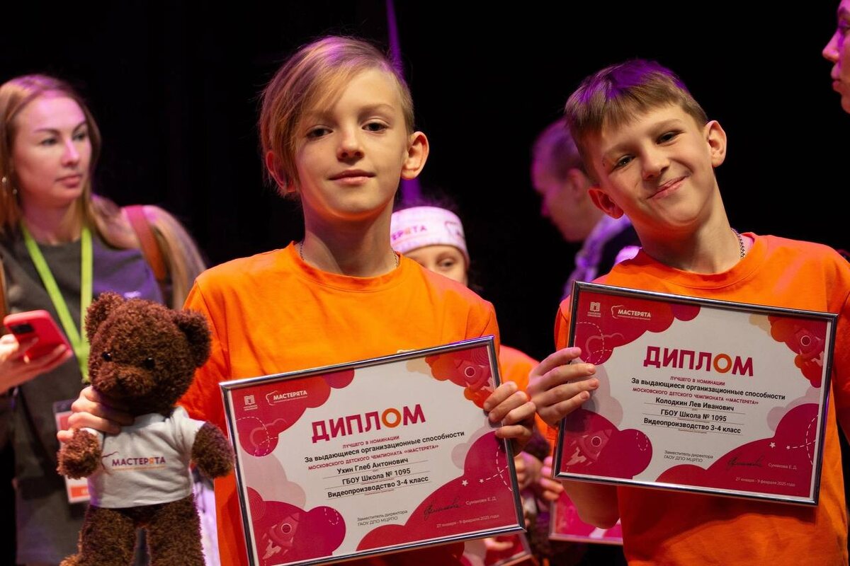 Наши ученики из 4«Г» класса стали финалистами чемпионата «Мастерята»🏅 🎬Глеб и Лев выбрали для участия компетенцию «Видеопроизводство». В задании полуфинала нужно было отснять ролик на тему «Моя Семья» и мальчики заняли 6 место в рейтинге. В финале же тема очерка «Жизнь колледжа» принесла им дипломы в номинации «Лучшие организационные способности». 💪🏻За время участия в чемпионате, ребята получили очень много новых профессиональных знаний по видеопроизводству. Полезные очные и онлайн-занятия с кураторами конкурса только подогревали интерес ребят, а дух соперничества подталкивал к тренировкам. И вот, ребята собрались, подготовились и показали отличный результат в финале чемпионата! «Обязательно будем участвовать в следующем году!» — поделились мальчишки. Поздравляем Льва и Глеба с прекрасным результатом и желаем не останавливаться на достигнутом!🏆 #ДОНМ #ШколыКолледжиМосквы