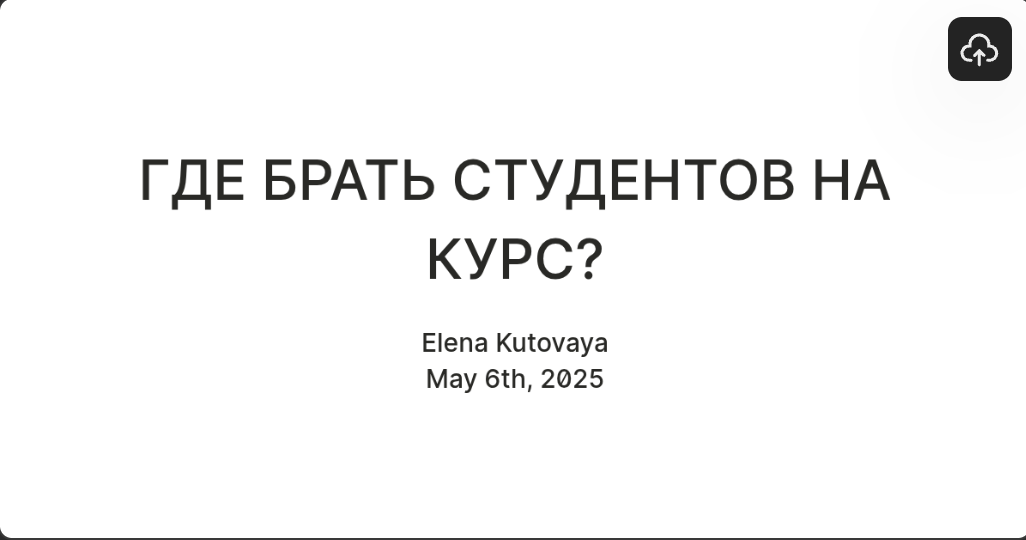 Признавайся: тебе сложно продавать? Это один из самых распространенных “страхов” и препятствий у тех, кто запускает свои курсы. Вот тебе пример: “Недавно я сама проходило обучение финансовой грамотности. Идет вебинар. Команда дает очень крутую и ценную для меня информацию. И тут кто-то в чате пишет: “А почему бы вам не пойти преподавать в институт?” Ведущий в недоумении: “У меня слишком много денег для этого ответила она”. То есть, если у тебя и правда есть знания, то почему ты не в институте преподаешь? У многих установка, что только там можно учить чему-то, а остальные - непонятно, кто им сказал "что они могут преподавать". Но тот комментарий хорошо показывает, откуда страхи продавать: Перейдем к тому, как и где брать студентов. Стратегия, которой я придерживаюсь по жизни (и она мне помогает быстро развиваться, находить интересные и необычные проекты, менять отрасли, как хочу) - облегчить путь ищущего твой продукт. Что это значит? - Это значит, не искать “своих”, а создавать много