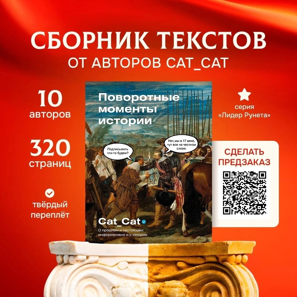 Дорогие читатели Дзена. Долгое время вы могли видеть у себя в ленте тексты авторов коллектива Cat.Cat на историческую тематику. Среди нас есть как академические историки, так и публицисты, для которых это просто хобби. И теперь мы сделали маленький шаг для вас и огромный для нашего авторского коллектива. Благодаря издательству АСТ уже в июне на ваших полочках может появиться наш авторский сборник “Поворотные точки в истории”. Что вы найдете внутри? Историческую публицистику на тему различных событий, ставших поворотными. Некоторые из них очевидны, другие могут показаться незначительными. Но все они в чем-то интересны.