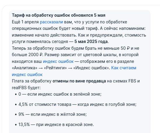 Напоминаю, что с 5 мая на Ozon начал действовать новый тариф на обработку ошибок по вине продавца
